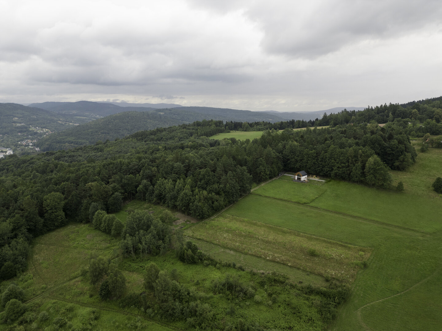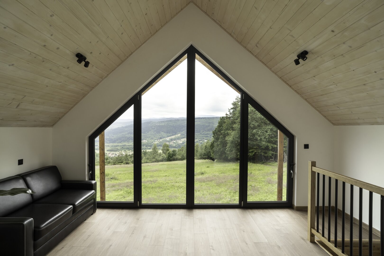 Druga sypialnia mieści się na piętrze. Znajdziesz tam duże łóżko dwuosobowe, które zapewnia komfortowy sen i pełen relaks. Z tej sypialni roztacza się przepiękny widok na Beskidy, który sprawia, że każdy poranek jest wyjątkowy, a zachody słońca zapierają dech w piersi.