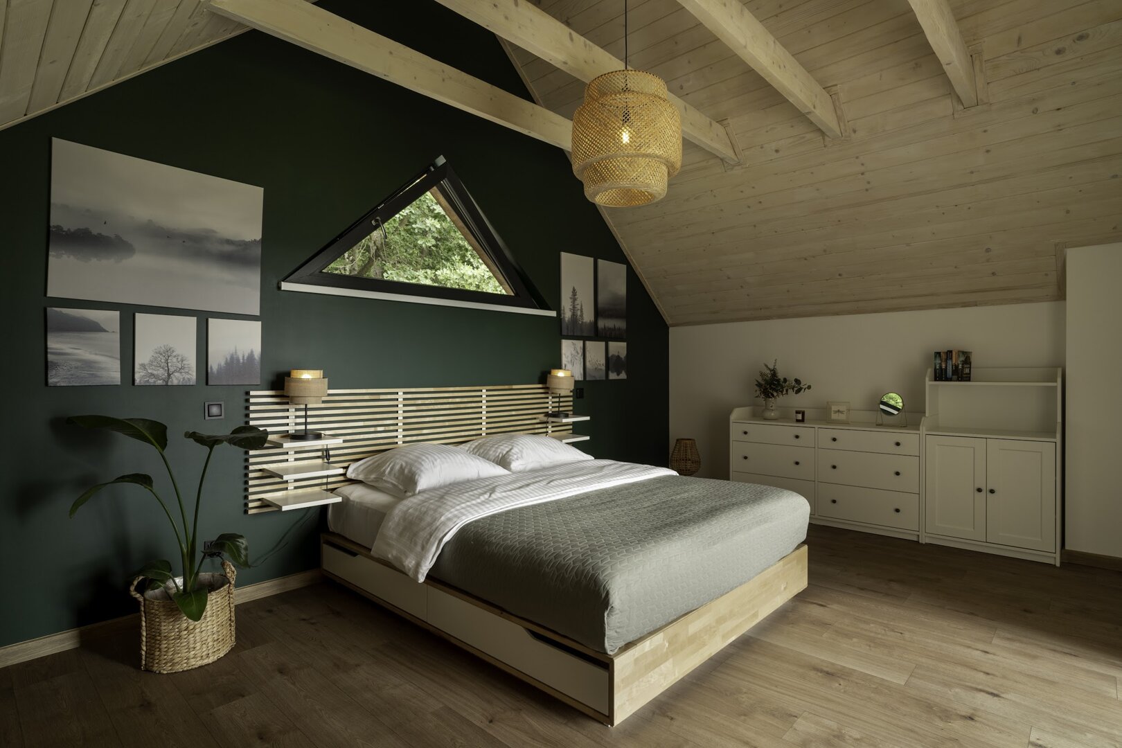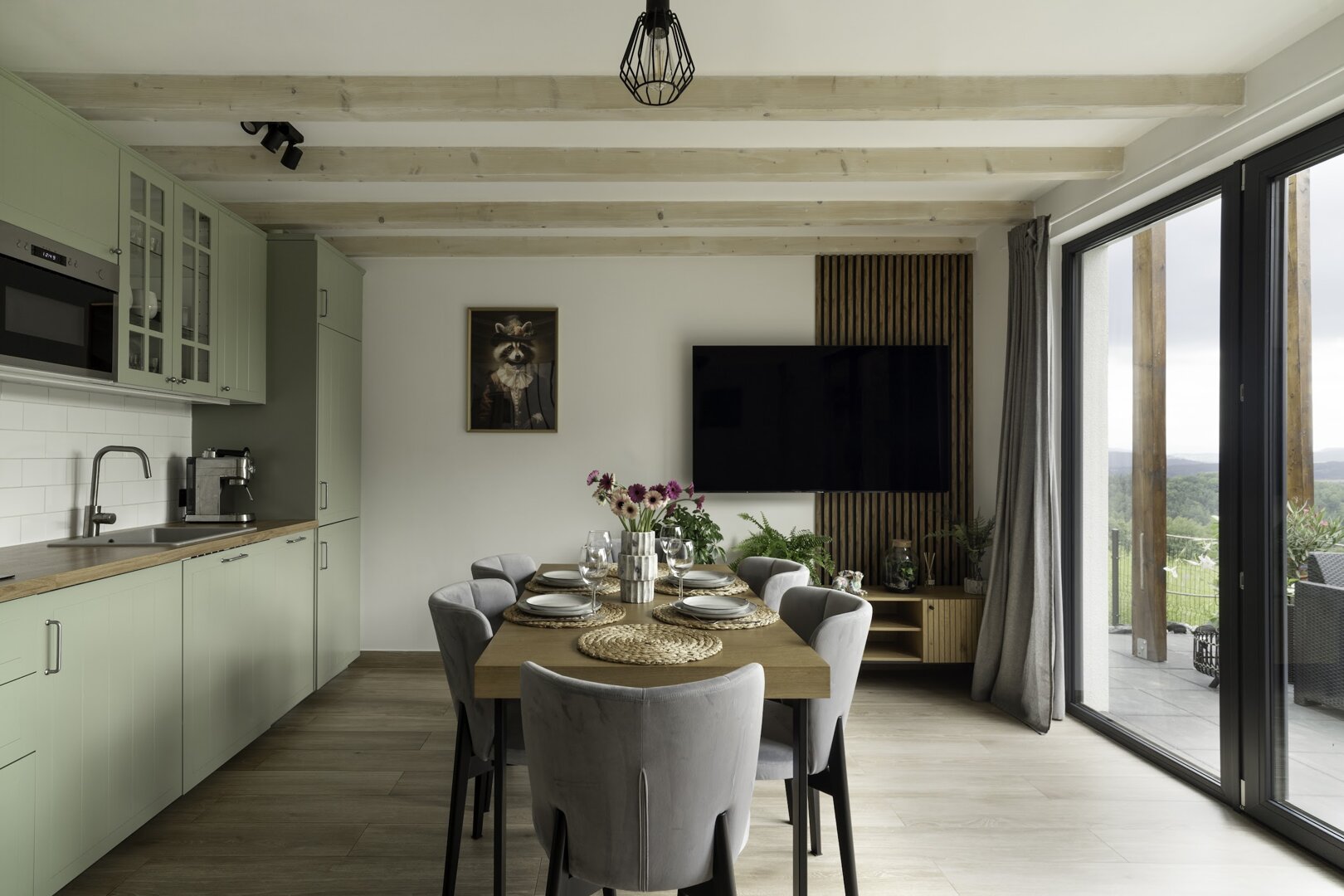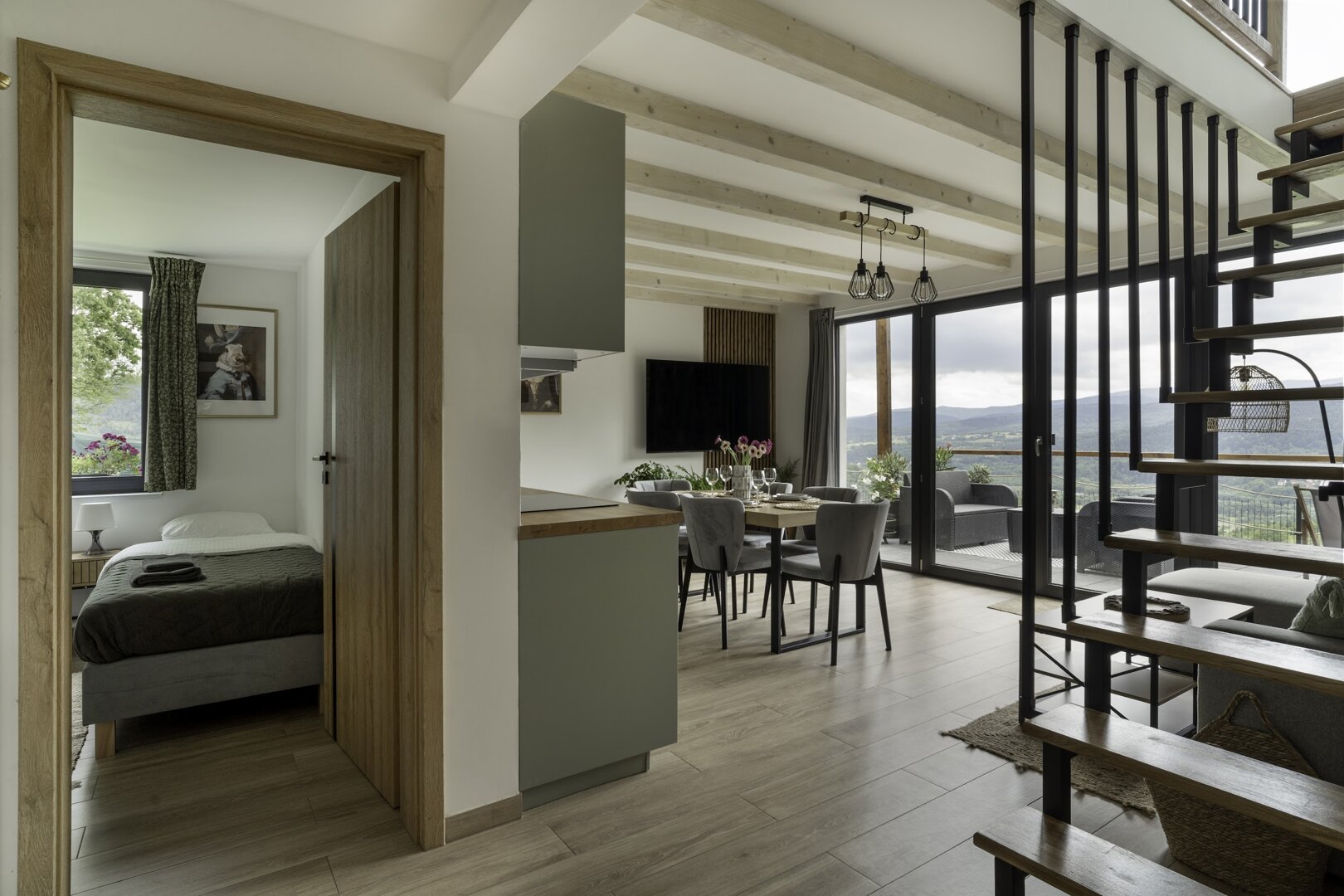 Naszym celem było stworzenie miejsca, które nie tylko zapewnia komfort, ale także pozwala poczuć bliskość z naturą. Każdy detal, od miękkich, naturalnych tkanin po kamienne dodatki, został starannie dobrany, aby oddać hołd pięknu górskiego krajobrazu i spokojowi leśnych ostępów.